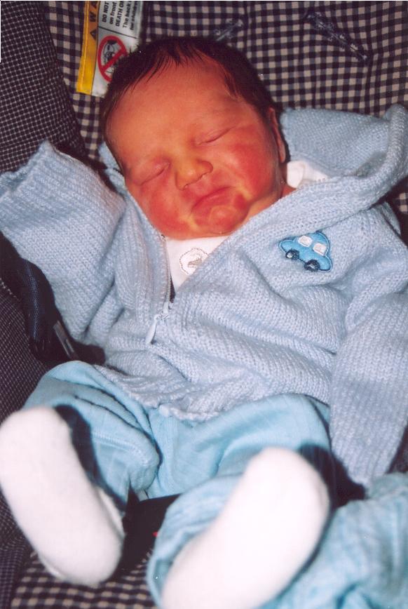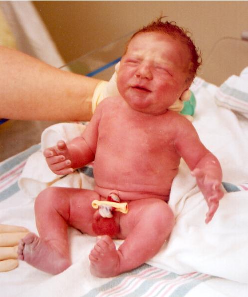 Dick and Karyn, and big brother Garrett, would like to introduce this small miracle to their families and to the World Wide Web. A child who also wanted to be early, arrived without a hitch. Mother and son are doing great.